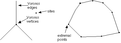At most there are 3n - 6 ( really 3n - 3 - # of hull edges) Voronoi edges q(n)