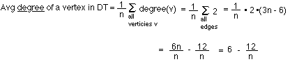 in the Delaunay triangulation of degree of v multiplied by 1/n. This is at most 1/n times the sum over all edges, where each endpoint is counted separately.